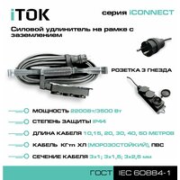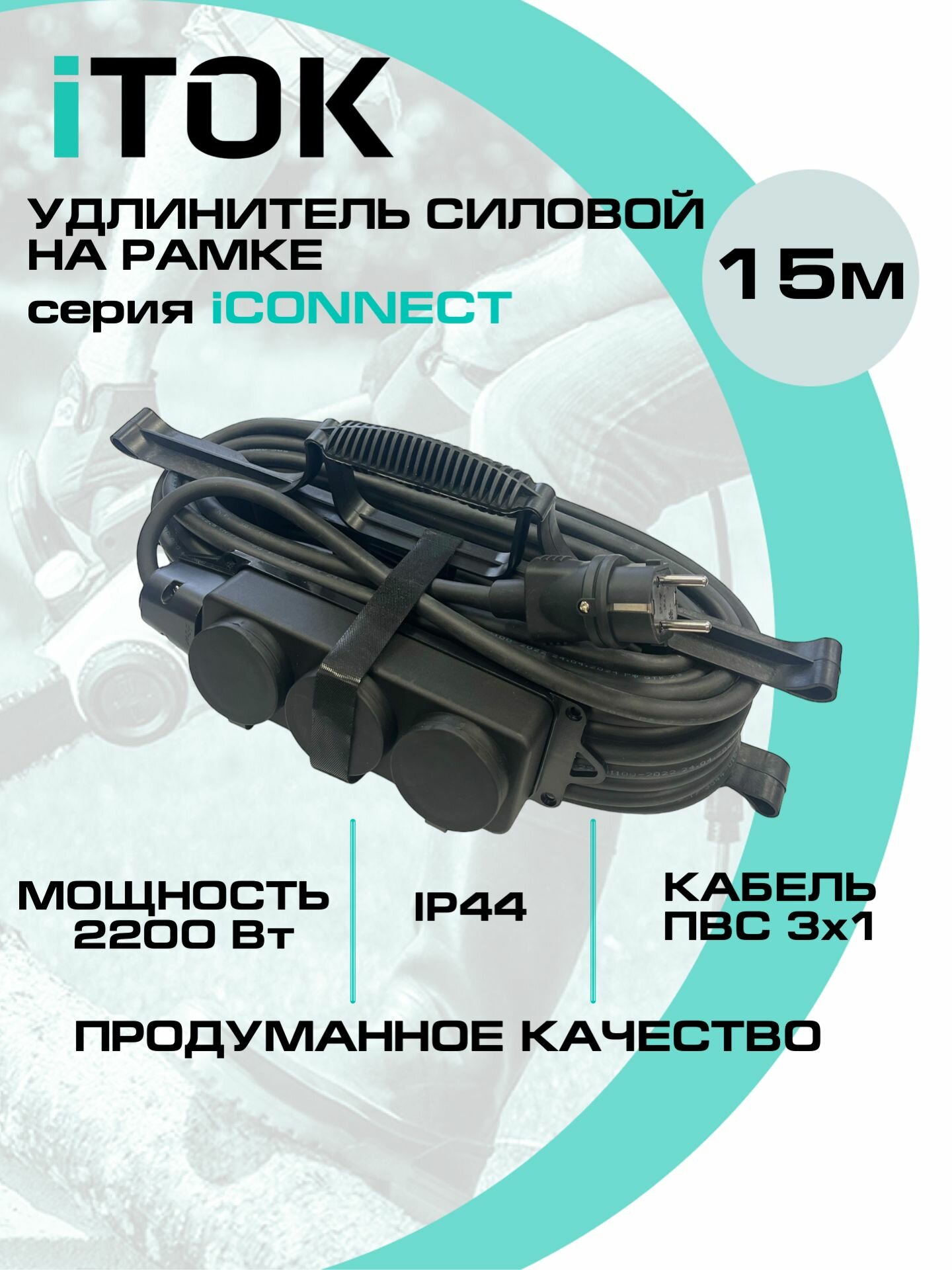 Удлинитель силовой уличный ПВС 3х1 мм 3 розетки IP44 15 м на рамке с заземлением серии iCONNECT iTOK: сравнение цен, характеристики, фото, актуальное наличие и цены.