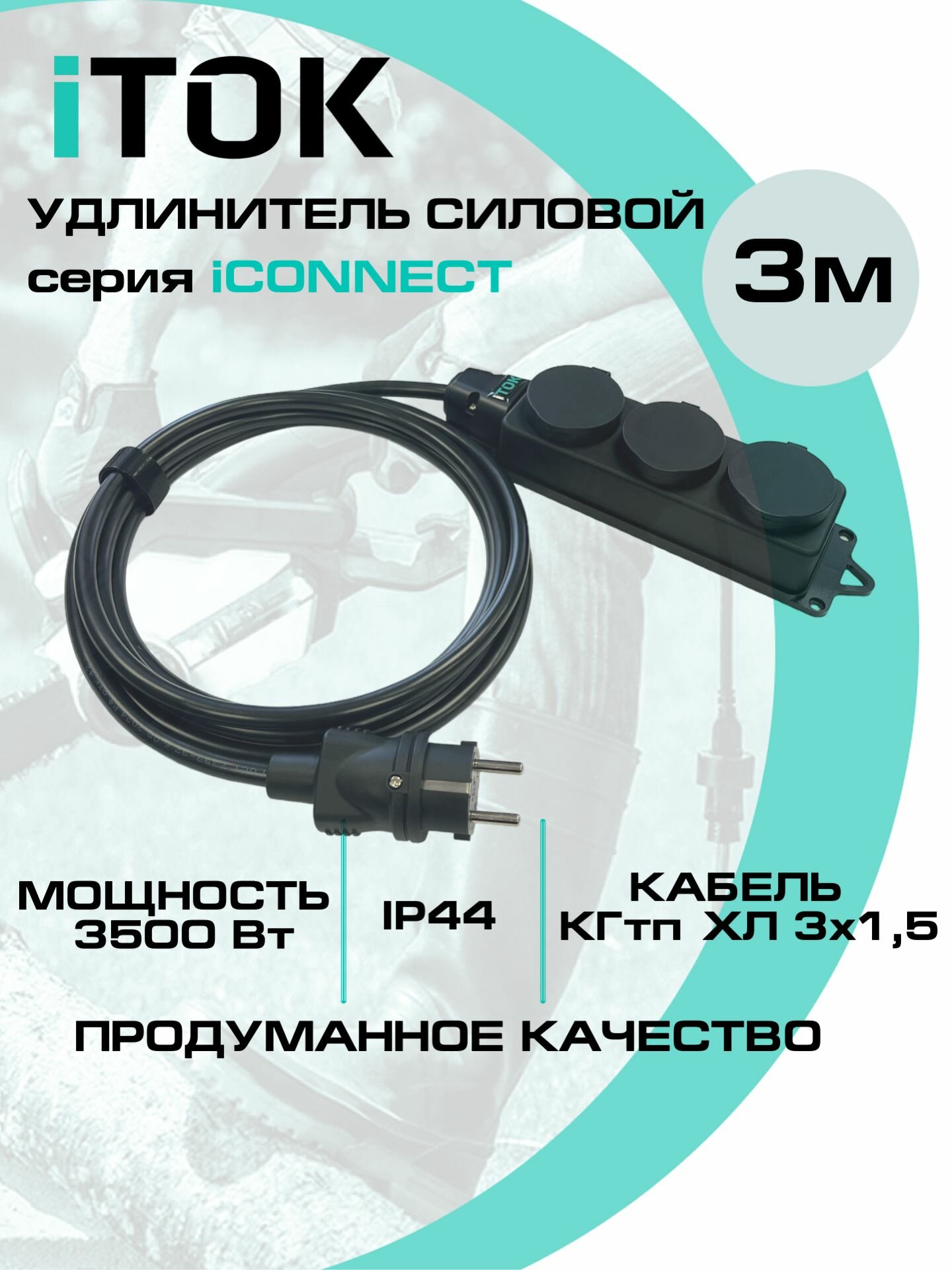 Удлинитель силовой уличный КГтп-ХЛ 3х1,5 мм 3 розетки IP44 3 м с заземлением серии iCONNECT iTOK: сравнение цен, характеристики, фото, актуальное наличие и цены.