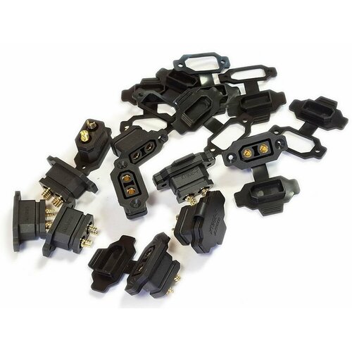 Силовые разъемы-розетки Amass XT90E-F "мама" с ПВХ защитными крышками для установки на плату или корпус. Коннекторы Amass XT90E-F предназначены для использования в радиоуправляемых моделях, квадрокоптерах, робототехнике, электротранспорте и других устройствах.