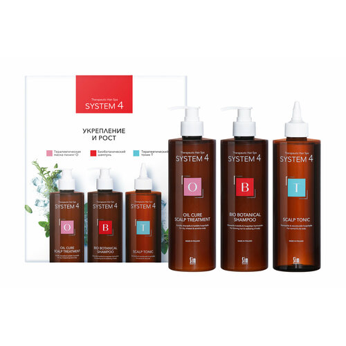 | Состав | Терапевтическая Маска-пилинг O System 4 Oil Cure Scalp Treatment: Aqua, Cetearyl Alcohol, Glycerin, Cetrimonium Chloride, Dipalmitoylethyl Hydroxyethylmonium Methosulfate, Ceteareth-20, Salicylic Acid, Climbazole, Piroctone Olamine, Rosmarinus Officinalis (Rosemary) Leaf Extract, Propylene Glycol, Sodium Laureth Sulfate, Sodium Laureth-8 Sulfate, Sodium Oleth Sulfate, Sodium Hydroxide, Menthol, Sorbitol. Биоботанический Шампунь System 4 Bio Botanical Shampoo: Aqua, Sodium Laureth Sulfate, PEG-4 Rapeseedamide, Cocamidopropyl Betaine, Glycerin, Disodium Undecylenamido MEA-Sulfosuccinate, Sodium Laureth-8 Sulfate, Sodium Oleth Sulfate, Glycereth-2 Cocoate, Glycol Distearate, Salicylic Acid, Piroctone Olamine, Menthol, Betula Alba Leaf Extract, Arctium Lappa Root Extract, Equisetum Arvense Extract, Urtica Dioica Leaf Extract, Rosmarinus Officinalis Leaf Extract, Nasturtium Officinale Leaf/Stem Extract, Aloe Barbadensis Leaf Extract, Propylene Glycol, PEG-40 Hydrogenated Castor Oil, Tocop |