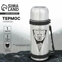 Купить Сима-ленд Термос «Медведь», 1000 мл, пластик, коррозионностойкая сталь, цвет: коричневый, серебристый с доставкой по всей России.