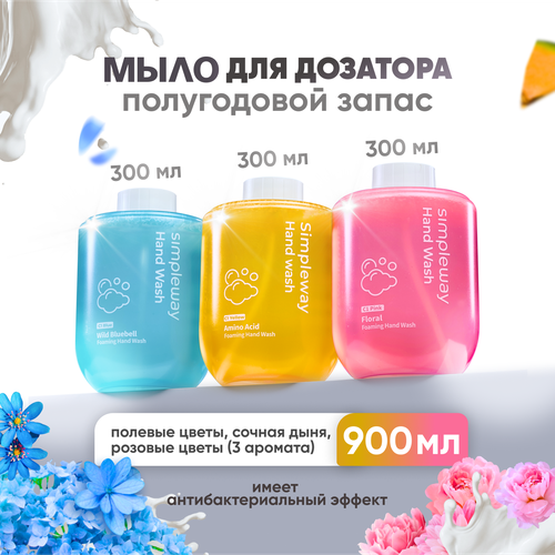 Нежная, но плотная пенка, сладкий ненавязчивый аромат дыни, свежий аромат цветов и дикого колокольчика, питание и увлажнение кожи – все это сочетается в нашем жидком мыле SimpleWay для дозатора. Мы знаем, как важно следить и ухаживать за собой, именно поэтому наша команда разработала специальный состав, позволяющий поддерживать кожу ваших рук молодой и нежной. В наборе для пенного дозатора три сменных блока для диспенсера по 300 мл с разными ароматами для бесконтактного мытья. Благодаря тому, что жидкое мыло вспенивается внутри сенсорного дозатора, поверхность сантехники остается сухой и чистой. Дозатор превращает раствор в воздушную пену, что позволяет экономично использовать блок: вы можете пользоваться им почти два месяца подряд без покупки нового картриджа. Мягкая формула универсального мыла обеспечивает бережный уход за чувствительной кожей. Нежная пенка поможет легко и быстро приучить детей к мытью рук. Это очень удобная система, в которую установлен специальный инфракрасный датчик. Когда в зону действия этого датчика попадают руки, запускается система подачи пенки и человек получает очередную дозу средства. Поддержание чистоты – это важная привычка, которая позволяет чувствовать себя комфортно в любой ситуации. Детское мыло-пенка для рук и тела и сменные блоки для бесконтактного автоматического дозатора станут отличным решением для дома: для кухни, для ванной, для стирки, а также для офиса, детского сада и школы. Это удобная система, которая чаще всего устанавливается в ванной комнате. Материал сменных блоков – безопасный пластик, который поддается переработке. Для нашей компании важно, чтобы процесс поддержания собственной красоты добавлял удовольствие в вашу жизнь и не вредил окружающей среде. Для замены емкости необходимо открыть сменный блок, вставить его снизу и повернуть по часовой стрелке для надежного закрепления. Это отличный подарок как женщинам, так и мужчинам на любой праздник. Благодаря своей уникальной формуле, подходит для использования как для рук, так и для лица, тела и даже волос. Порадуйте себя и своих близких средством для дозатора Soap Dispenser, который обеспечит вам и вашей семье достойный уровень гигиены и способствуют уходу за кожей.