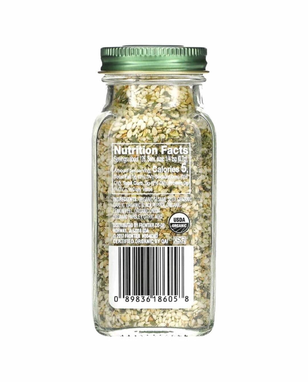 Органические семена кунжута, органический чеснок, органический черный перец, цедра органического лимона, органический лук, органическая петрушка, лимонная кислота.
