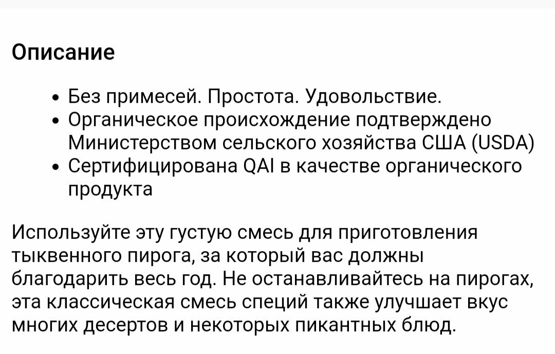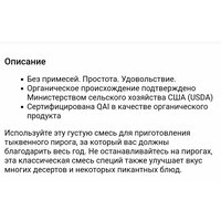 - Органическое происхождение подтверждено Министерством сельского хозяйства США (USDA)