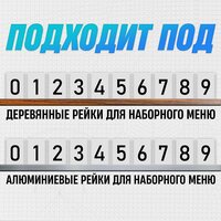 Эти символы помогут вам оперативно обновлять меню в зависимости от сезона, специальных акций или новинок. Серия цифр позволит вам гибко регулировать представление информации, создавая уникальные предложения каждый день. Компактный размер символов делает их удобными для хранения и использования в любых условиях.