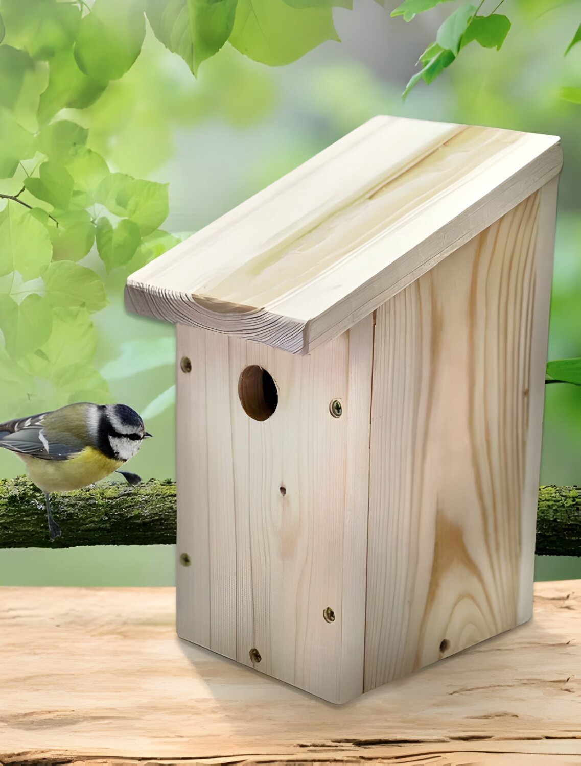 Синичник внешне похож на традиционный скворечник, но гораздо меньших размеров.