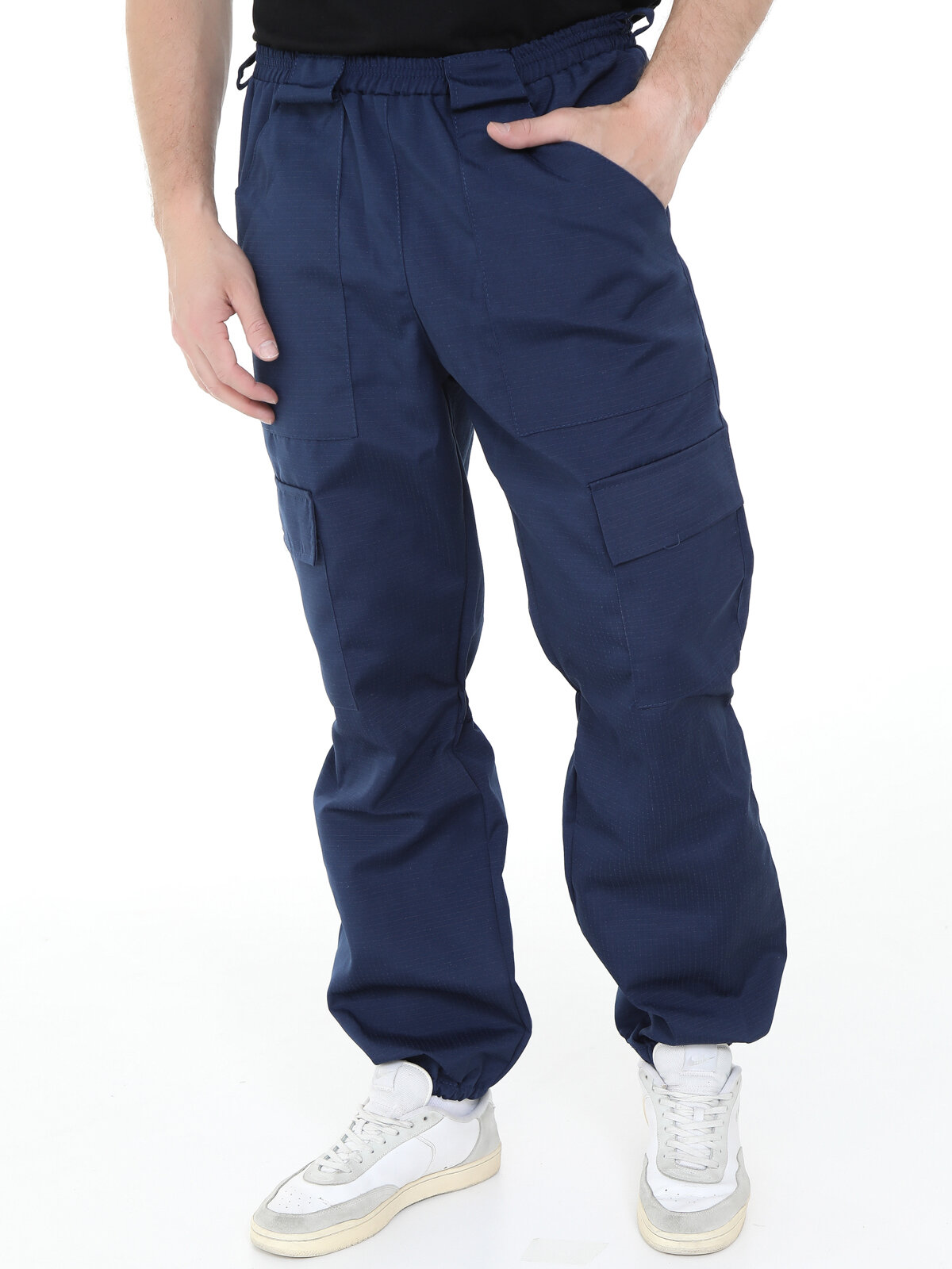 Брюки рабочие из ткани рипстоп. Четыре кармана спереди. Крой свободный, движения при активной физической нагрузке не сковываются. Ткань плотно к телу не прилегает. Резинки позади на уровне колен и по талии. Обработаны влагостойкой пропиткой, что позволяет задерживать влагу, при намокании сохнут быстро. По плотности сравнимы с джинсой. Подойдут на любой сезон. В зиму пригодны при условии ношения с термобельем. Тактические брюки подходят для охоты и рыбалки. Представлены в широком ассортименте цветов, в том числе есть и мужские камуфляжные брюки. Спецодежда на все случаи жизни. Подходят как тактическая форма для похода. Рабочая одежда для производственного предприятия и склада. Если вам нужны камуфляжные штаны или однотонные рабочие штаны, то берите их из такого материала как этот - из рипстопа.
