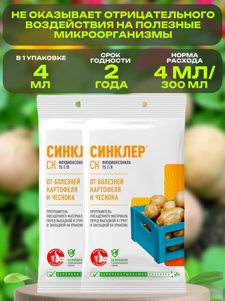 Синклер, 2 упаковки по 4 мл: применяется для обеззараживания картофеля, а также луковиц, клубней, корневищ цветочных культур: сравнение цен, характеристики, фото, актуальное наличие и цены.