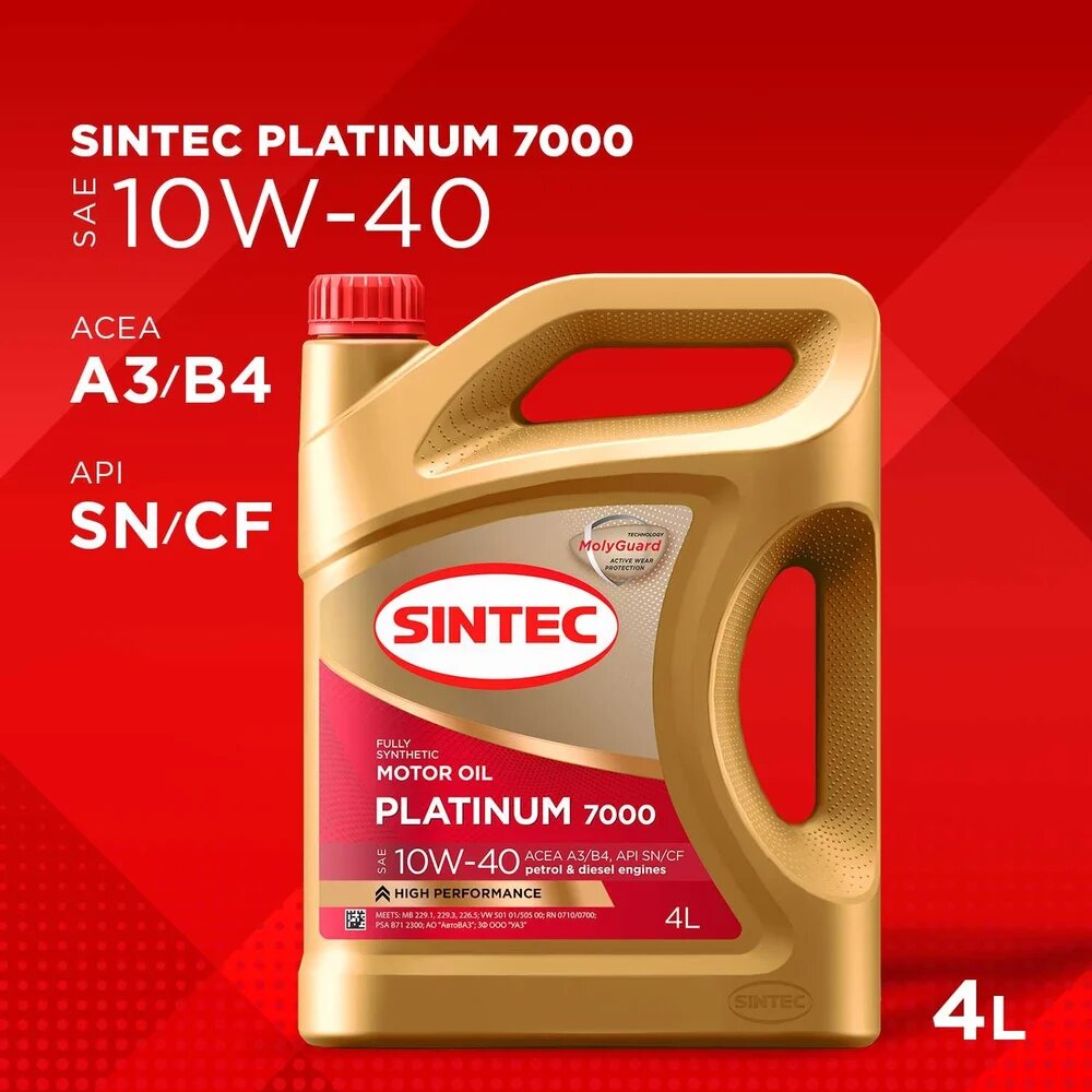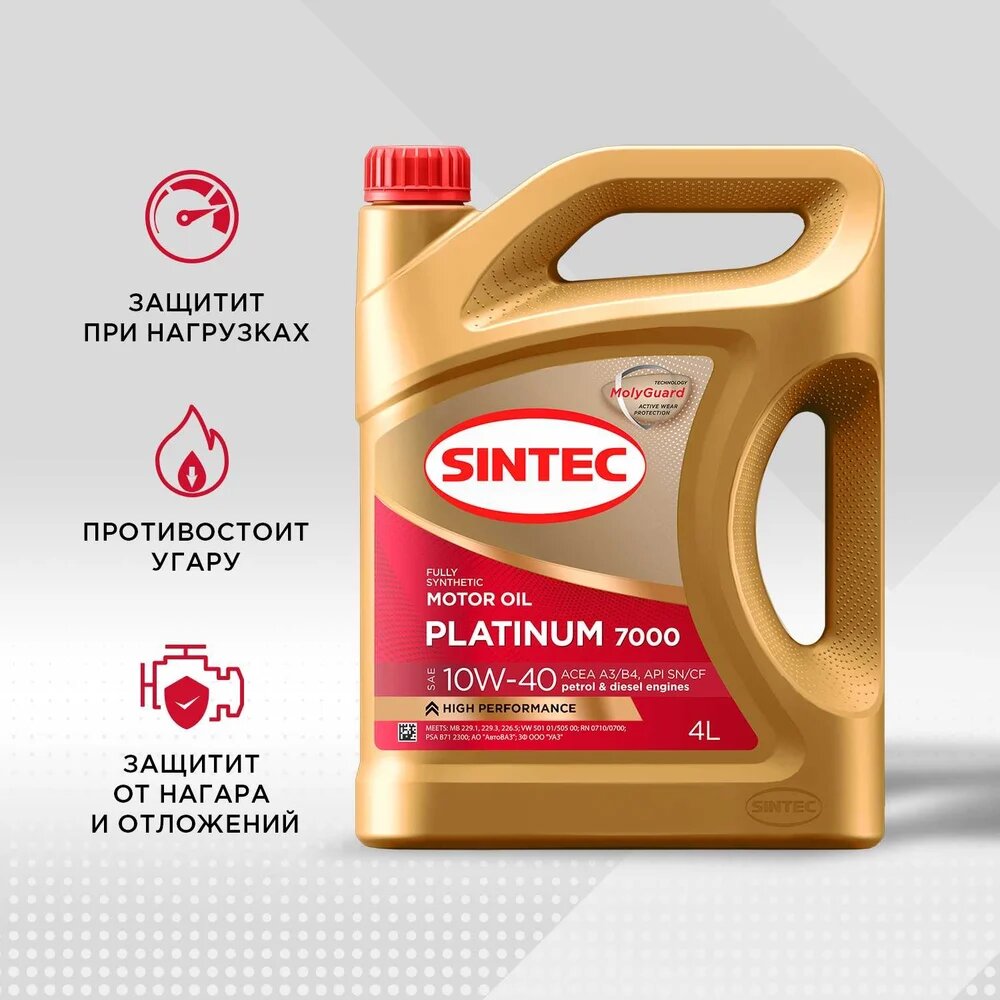 Моторное масло Sintec platinum 7000 sae 10w-40, api sn/cf, 4 л 600167: сравнение цен, характеристики, фото, актуальное наличие и цены.