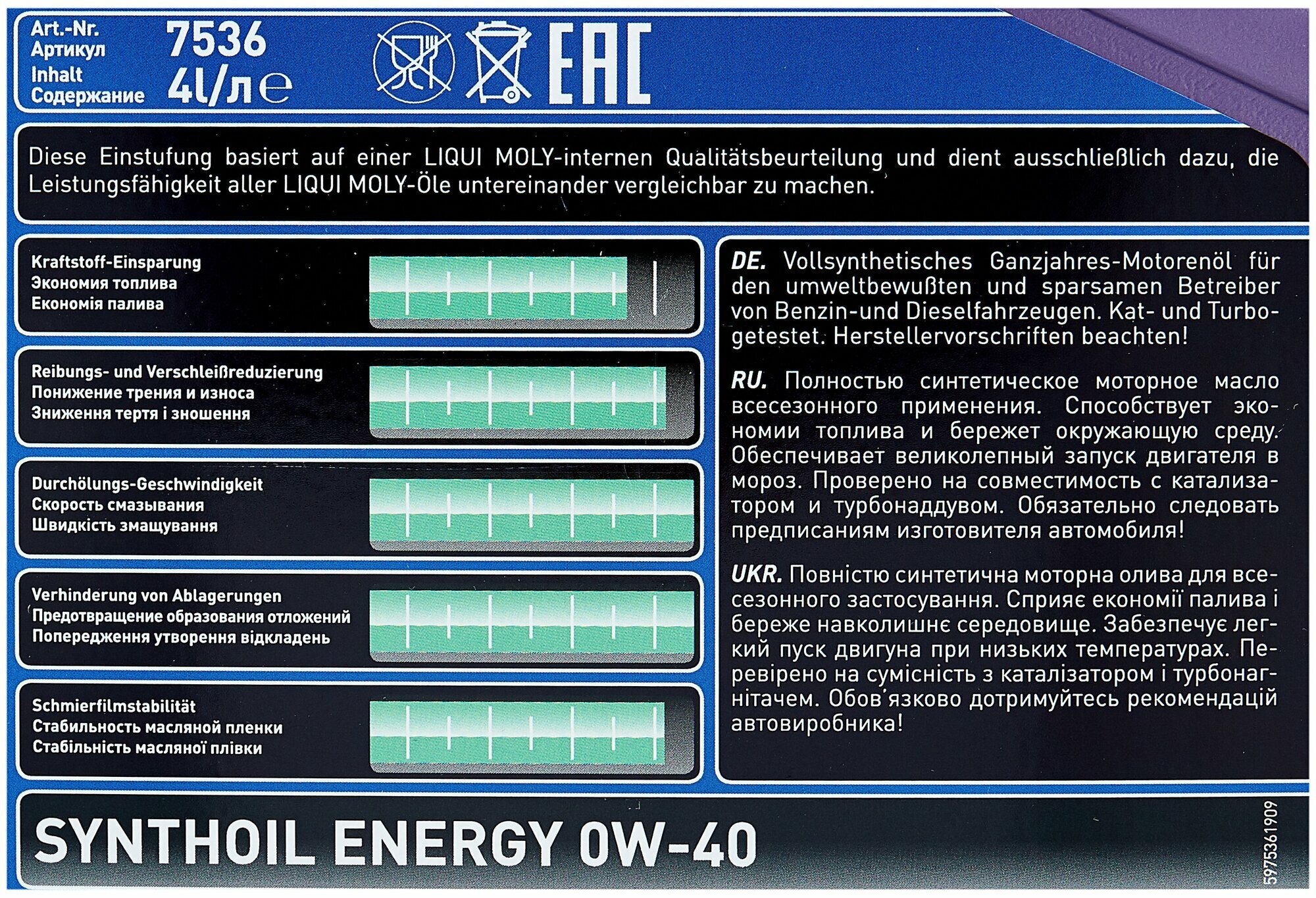 Синтетическое моторное масло Synthoil Energy 0W-40