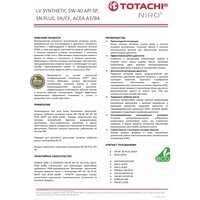Моторное масло Totachi NIRO LV Synthetic API SP, SN PLUS, SN/CF, ACEA A3/B4 5W-40 4л 19804: сравнение цен, характеристики, фото, актуальное наличие и цены.