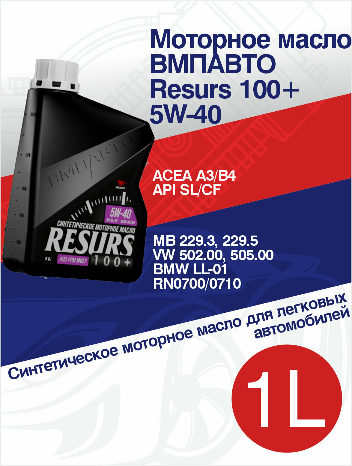 Купить Синтетическое моторное масло ВМПАВТО RESURS 100+ 5W-40 , арт. 9291 с доставкой по всей России. Синтетическое моторное масло ВМПАВТО RESURS 100+ 5W-40 , арт. 9291: сравнение цен, характеристики, фото, актуальное наличие и цены.