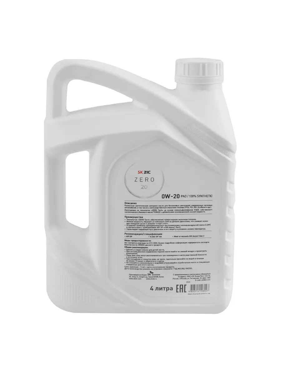 Масло моторное ZIC ZERO 20 0w20 Полностью синтетическое моторное масло для бензиновых двигателей современных легковых автомобилей, в том числе, с непосредственным впрыском топлива (TFSI, FSI, GDI, EcoBoost и др.). Изготовлено по технологии «ZERO Tech» на основе полиальфаолефинов (ПАО), собственного синтетического базового масла YUBASE PLUS с добавлением новой инновационной присадки на основе ионной жидкости.