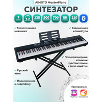 Купить Синтезатор Aimoto MasterPiano, полноразмерный цифровой 88 клавиш с педалью сустейма и стойкой, 25-уровневая сенсорная клавиатура, 900 тембров 700 ритмов 110 демокомпозиций полифония 128, MP3, черный с доставкой по всей России.