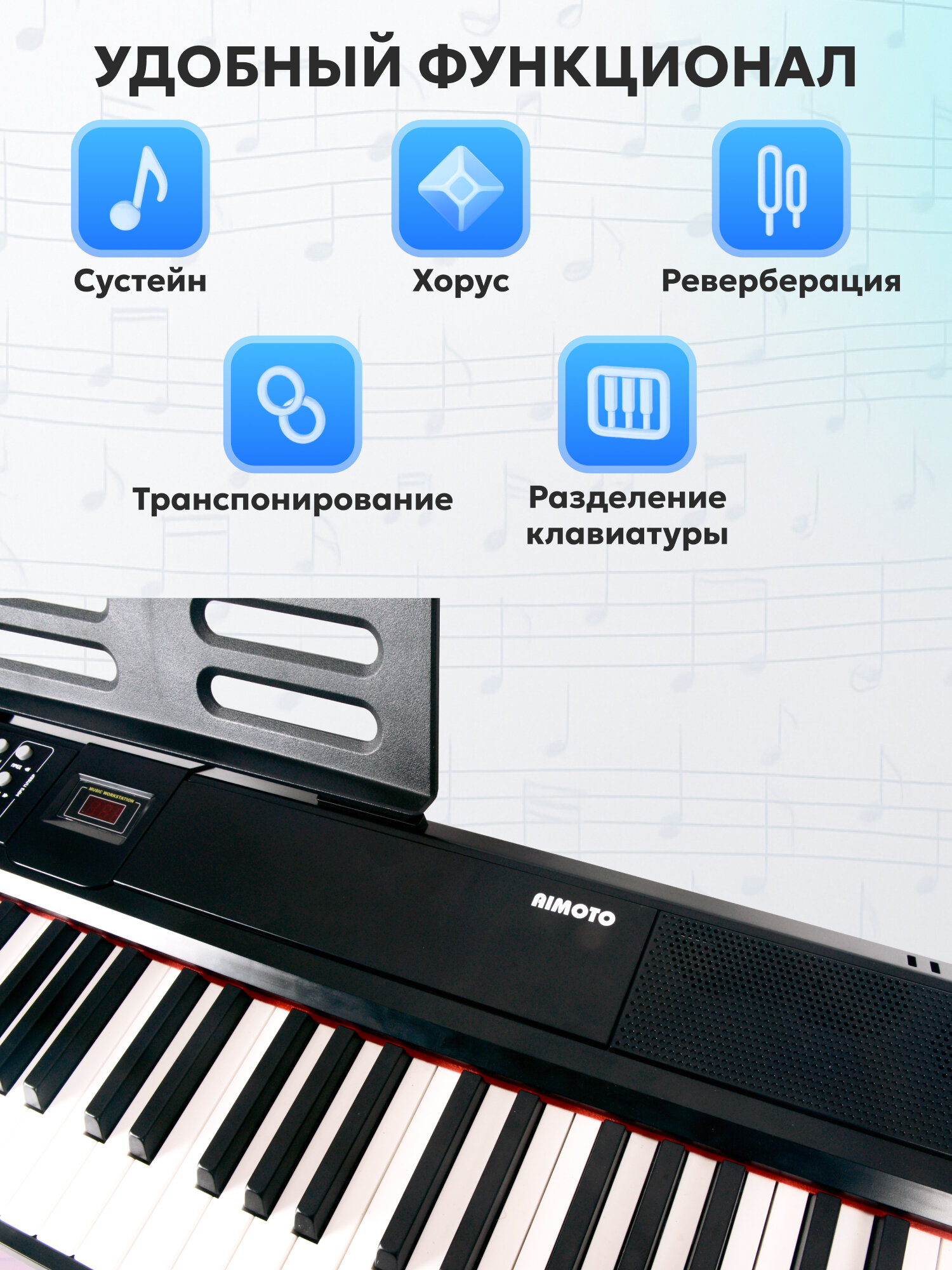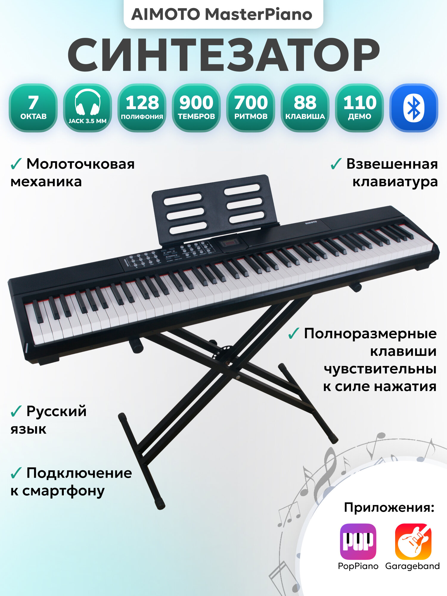 Синтезатор Aimoto MasterPiano, полноразмерный цифровой 88 клавиш с педалью сустейма и стойкой, 25-уровневая сенсорная клавиатура, 900 тембров 700 ритмов 110 демокомпозиций полифония 128, MP3, черный: сравнение цен, характеристики, фото, актуальное наличие и цены.