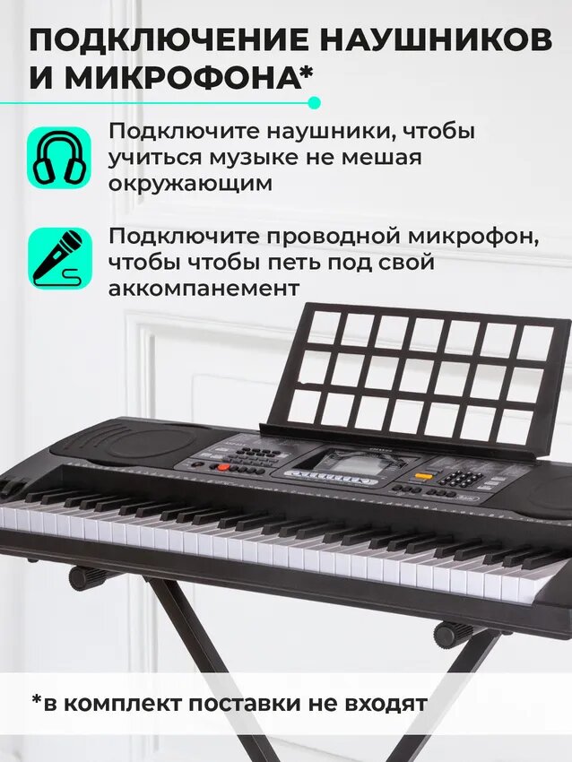 - Разъемы для подключения: USB, аудио вход, аудио выход/наушники, вход для микрофона — синтезатор профессиональный легко интегрируется с наушниками, колонками, компьютером или внешними устройствами.