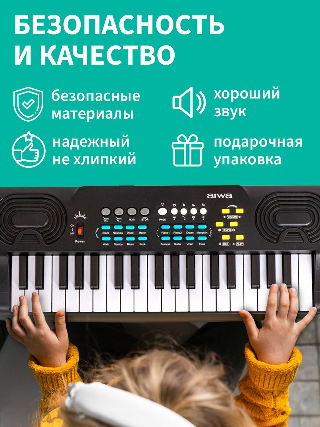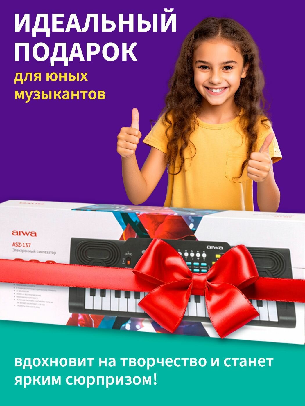 Купить Синтезатор детский электронный AIWA ASZ-137, 37 клавиш, вход для микрофона, 8 тембров, 8 ритмов, 4 ударных инструмента с доставкой по всей России.