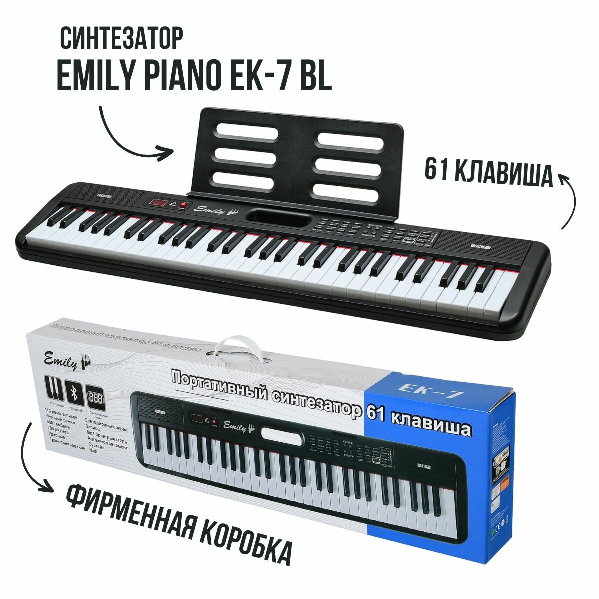 Купить Синтезатор EMILY PIANO EK-7 BK портативный черный 61 клавиша в комплекте сетевой адаптер с доставкой по всей России.