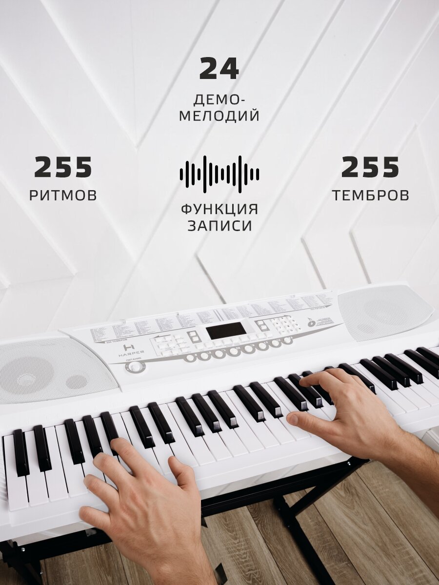 Купить Синтезатор Harper TT-154 white, цифровой, 54 клавиши, 255 тембров, функция записи с доставкой по всей России.
