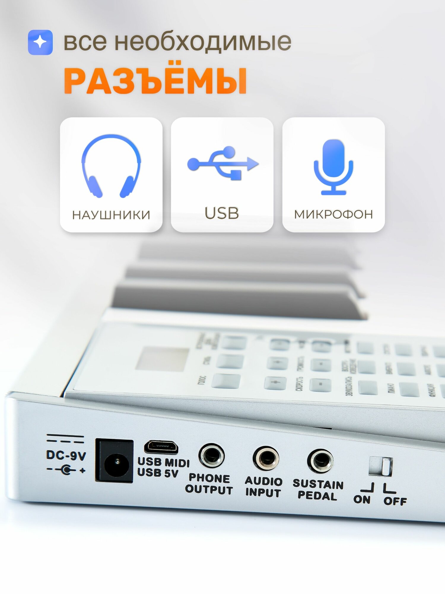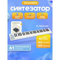Купить Синтезатор цифровой 61 клавиша Белый Jonson&CO JC-118, Silver с доставкой по всей России.