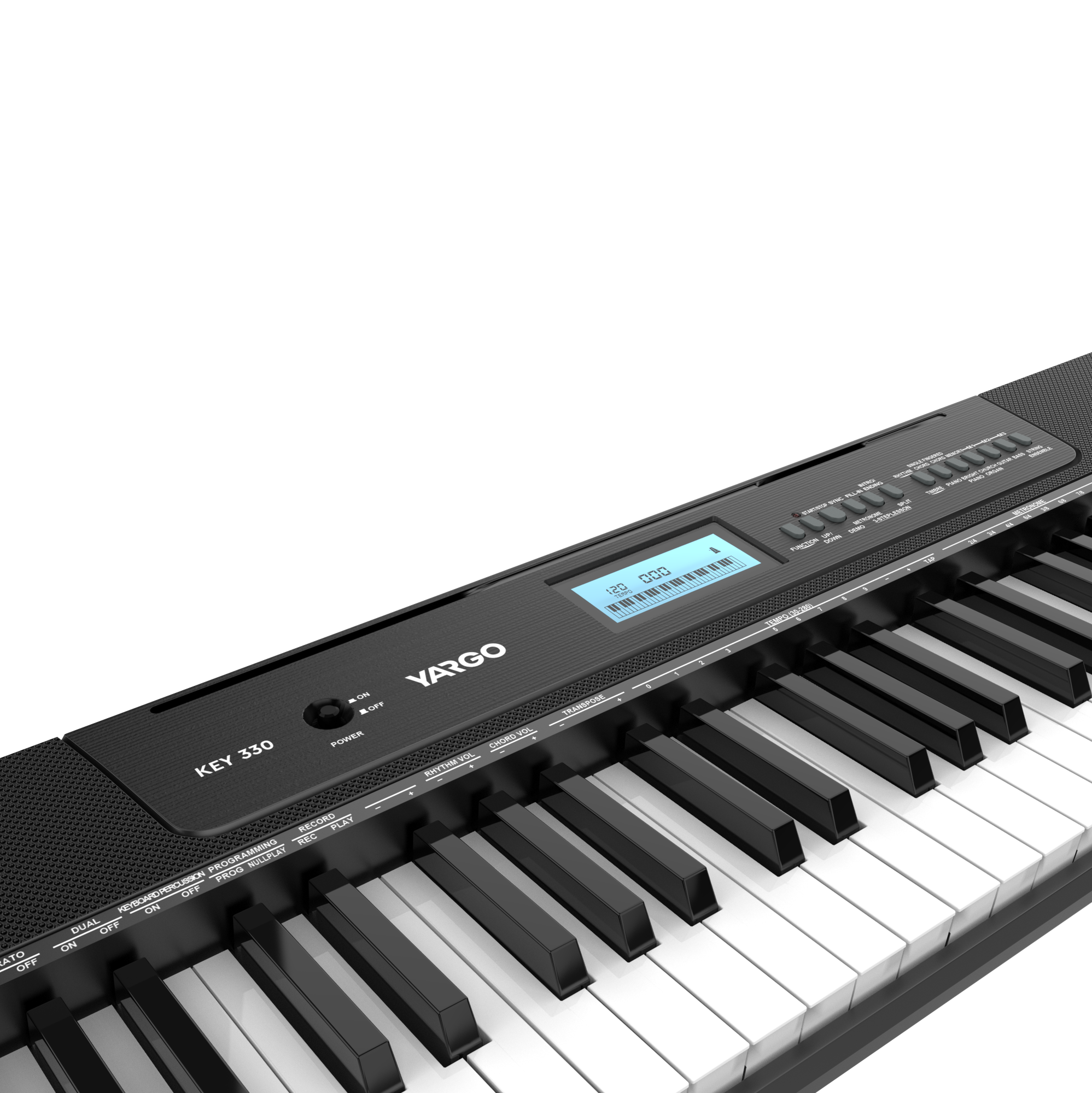 YARGO KEY 330 компактный синтезатор c автоаккомпанементом. Хороший выбор для начинающих музыкантов и любителей. Преимущества модели: динамическая клавиатура синтезатора реагирует на скорость и силу нажатия; 430 тембров и 300 стилей автоаккомпанемента; встроенные эффекты сустейна, вибрато, хоруса и реверберации помогают сделать звучание инструментов более насыщенным и глубоким; классическая и упрощенная аппликатура аккордов для управления аккомпанементом; разделение клавиатуры и наложение тембров; функции записи и обучения; Коммутация: USB-MIDI выход для подключения к компьютеру, аудиовыход и аудиовыход, выход на наушники, микрофонный вход, вход для педали сустейн.