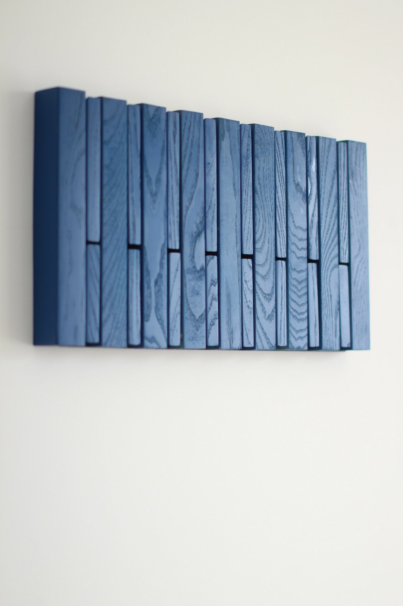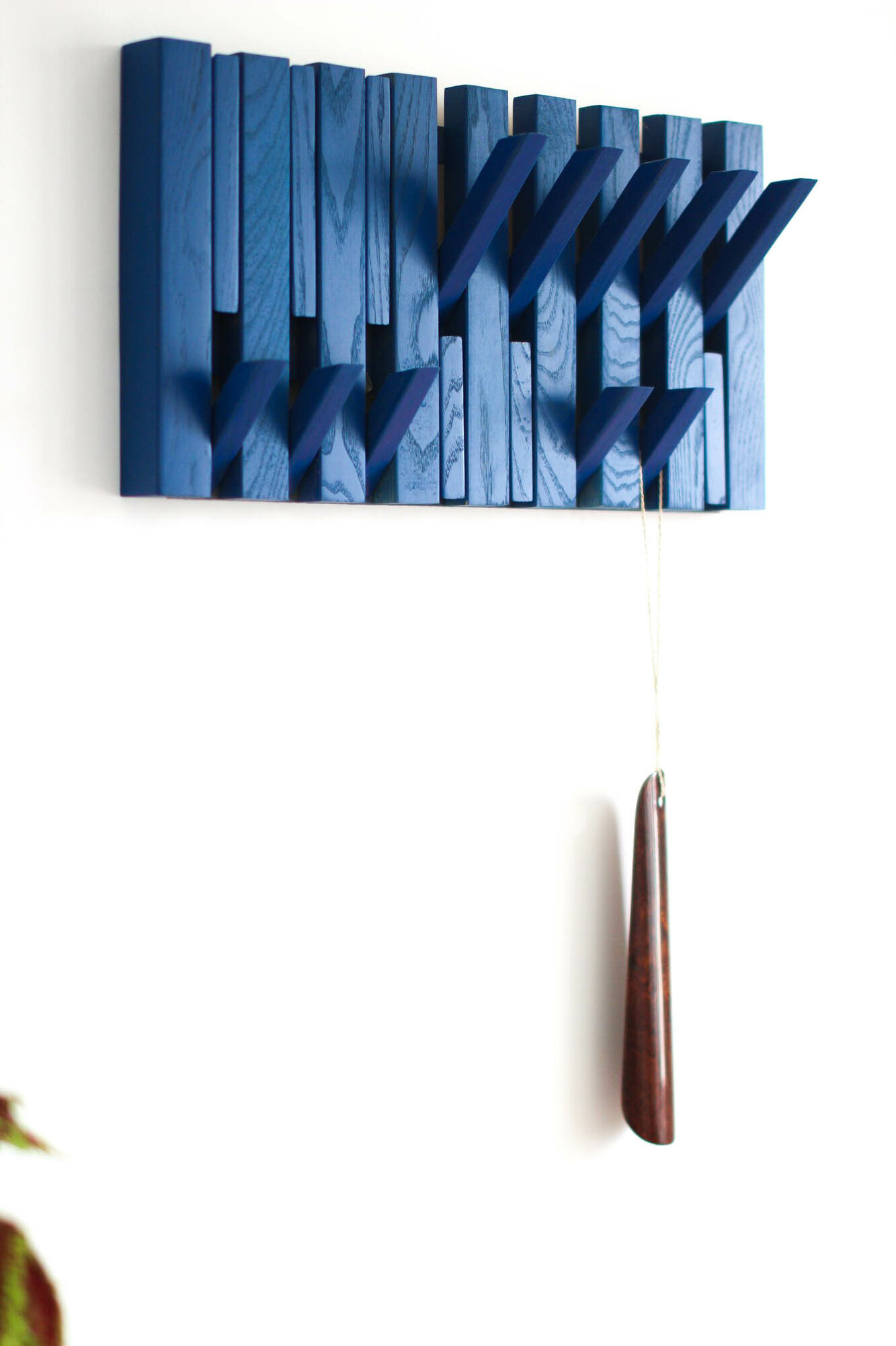 Купить Синяя настенная вешалка из массива дуба с 16 откидными крючками на магнитах с доставкой по всей России.