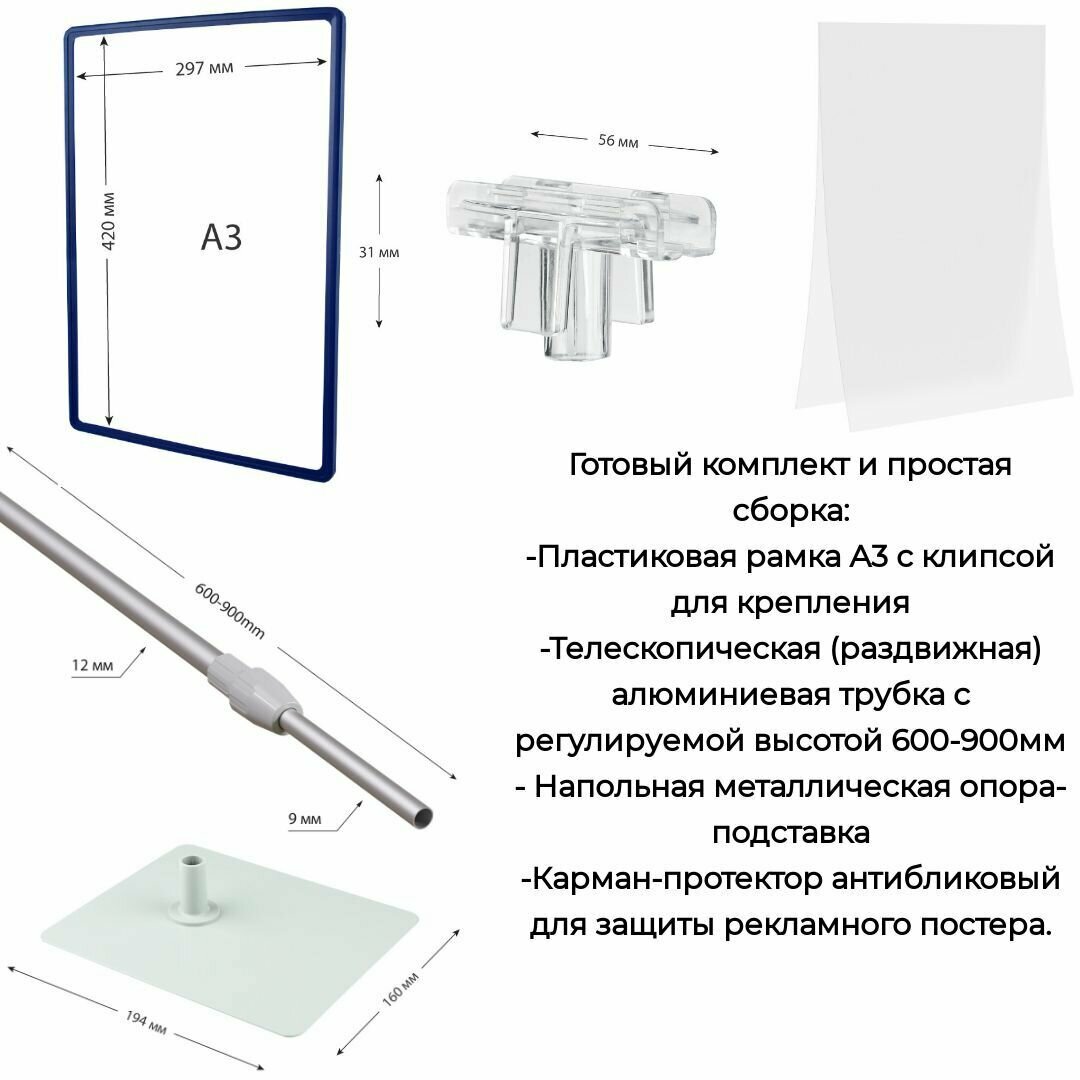 Купить Синяя рамка А3 с регулируемой по высоте алюминиевой ножкой (600-900мм) на металлической опоре / Информационная рекламная напольная стойка А3 , синяя с доставкой по всей России. Синяя рамка А3 с регулируемой по высоте алюминиевой ножкой (600-900мм) на металлической опоре / Информационная рекламная напольная стойка А3 , синяя: сравнение цен, характеристики, фото, актуальное наличие и цены.