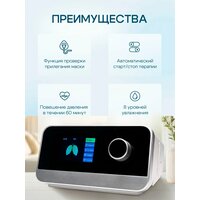 - Интеллектуальная система управления: с помощью алгоритма REG устройство автоматически подбирает оптимальное давление и уровень увлажнения, учитывая индивидуальные потребности пациента.