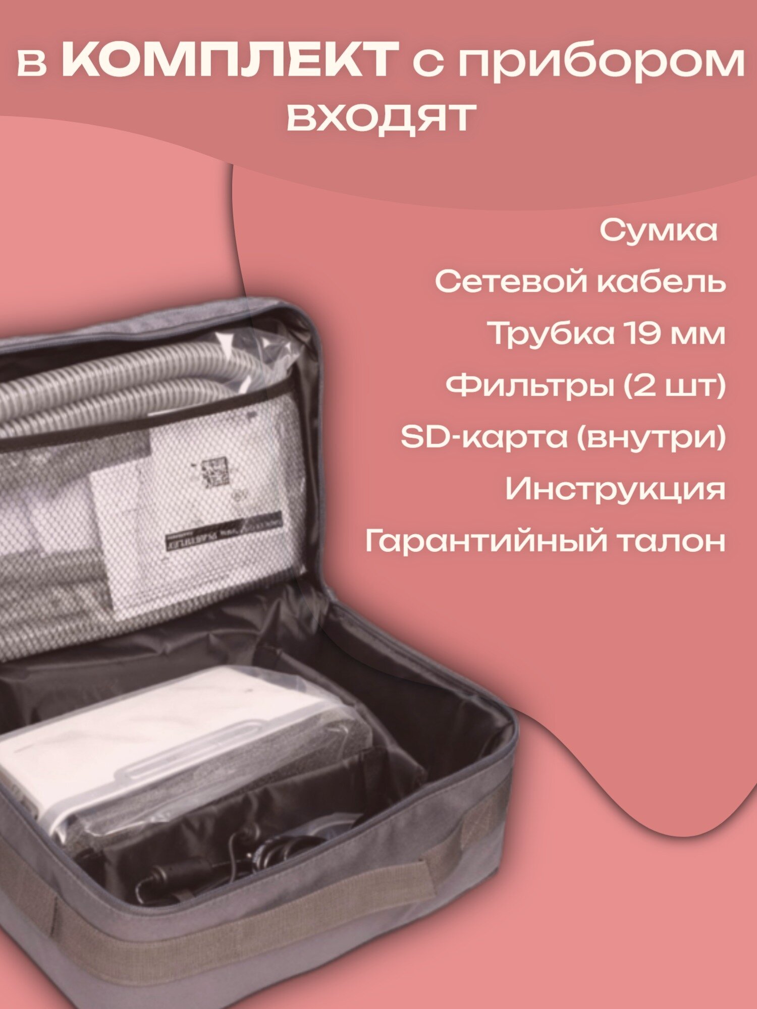 Вес аппарата всего 1,35 кг, имеет самые компактные размеры из всех стационарных автоматических СИПАП-аппаратов