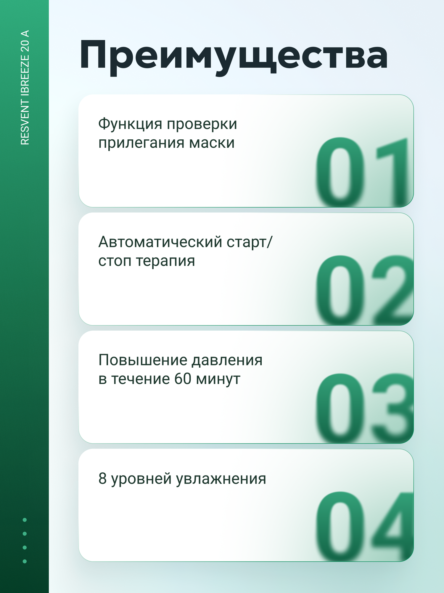 - Автоматический режим: система своевременно реагирует на остановки дыхания, плавно и мягко устраняя их.