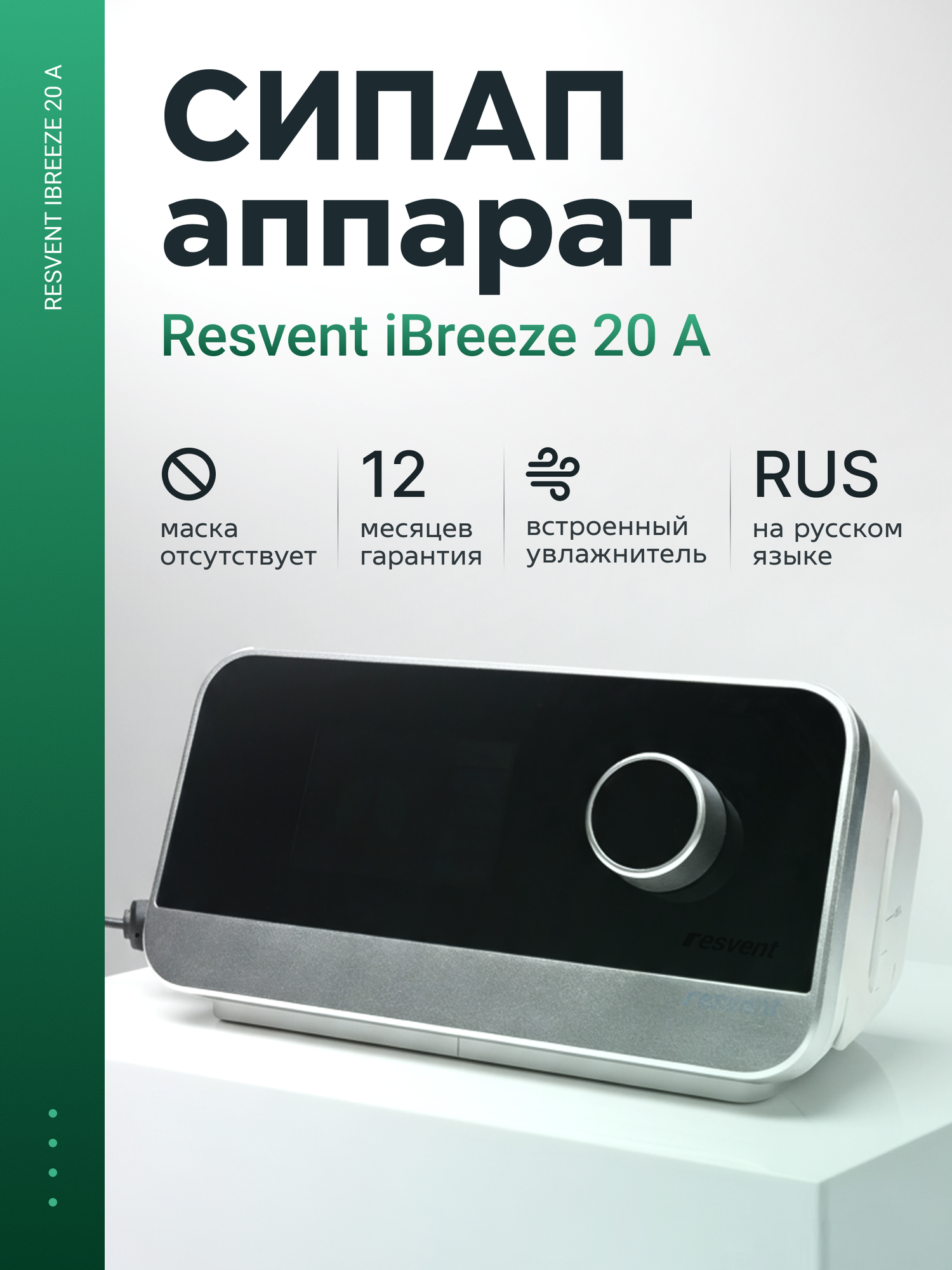 СИПАП аппарат ResVent iBreeze 20A обеспечивает комфортную и эффективную терапию синдрома обструктивного апноэ сна.