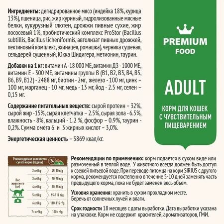 Корм не содержит искусственных красителей, ароматизаторов, ГМИ.