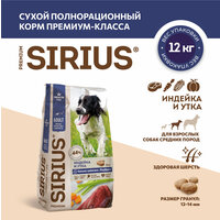 1) Только 100% натуральные продукты и высококачественные мясные ингредиенты: ягнёнок, утка, лосось, индейка, говядина, курица и сельдь.2) Качественная и бережная обработка сырья для сохранности полезных питательных веществ корма, поэтому он легко переваривается и усваивается в организме.3) Открытый и понятный состав в корме SIRIUS премиум класса.4) Уникальная добавка ProStor Bio Care – это комплекс пробиотиков и пребиотиков четвертого поколения, способствующий восстановлению микрофлоры кишечника, поглощает токсины и поддерживает иммунную систему организма.5) Омега 3 и Омега 6 для поддержания здоровья сердца, мозга, нервной системы, здоровья кожи и красоты шерсти. Корм не содержит искусственных добавок, красителей, ароматизаторов, ГМИ и мясокостной муки. SIRIUS - сухой корм премиум класса для полноценного ежедневного рациона взрослых собак средних пород. Высокое содержание мясных ингредиентов обеспечивает оптимальный уровень белка и укрепляет мышцы. Баланс витаминов и комплекса пробиотиков 4-го поколения PROSTOR+ нормализует пищеварение и укрепляет иммунитет. Омега 3 и Омега 6 способствуют поддержанию здоровья сердца, мозга, нервной системы, здоровья кожи и красоты шерсти. состав: дегидрированное мясо (индейка 14%, курица 8%) мясо утки 8%, пшеница, кукуруза, жир куриный, рис, гидролизованные мясные белки, растительные волокна (источник клетчатки), овсяные хлопья, семена льна, дрожжи, жир лососевый 0.5%, морковь сушенная, тыква сушенная, пробиотический комплекс ProStor (Bacillus subtillis, Bacillus licheniformis, автолизат пивных дрожжей, пектиновый комплекс, эхинацея, ромашка), сельдерей сушенный, юкка ШидигераДобавки на 1 кг: витамин А -18 000 МЕ, витамин Д3 - 1000 МЕ, витамин Е - 400 МЕ, витамины группы В (В1, В2, В3, В4, В5, В6, В9, В12) - 1468 мг, биотин - 2мг, железо - 100 мг, цинк - 128 мг, марганец - 15 мг, медь - 12 мг, йод - 3.4 мг, селен - 0,2 мг. Гарантируемые показатели питательной ценности: сырой протеин - 24%, сырой жир -16%, сырая клетчатка - 3,0%, сырая зола -7%, влажность - 9%, кальций- 1.3%, фосфор - 1.0%. Сумма омега 6 и 3 жирных кислот – 3,1%. Энергетическая ценность: 3965 ккал/кг.