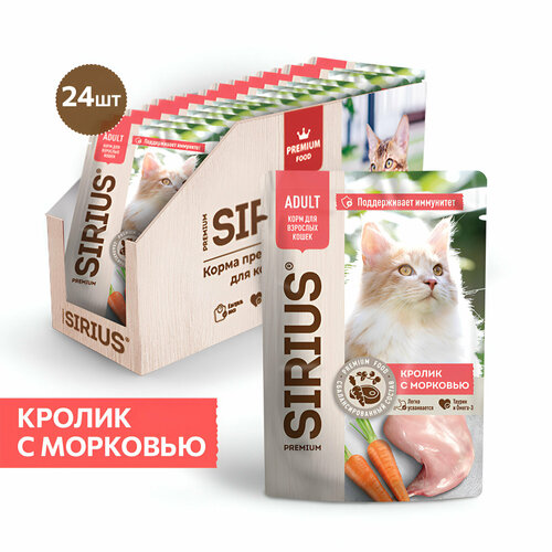 Купить SIRIUS PREMIUM ADULT 85 г пауч полнорационный консервированный корм для взрослых кошек кусочки в соусе кролик с морковью 1х24 с доставкой по всей России. SIRIUS PREMIUM ADULT 85 г пауч полнорационный консервированный корм для взрослых кошек кусочки в соусе кролик с морковью 1х24: сравнение цен, характеристики, фото, актуальное наличие и цены.