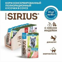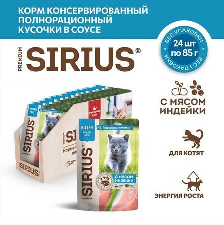 SIRIUS PREMIUM KITTEN 24 шт по 85 г полнорационный, консервированный корм для котят, с мясом индейки: сравнение цен, характеристики, фото, актуальное наличие и цены.