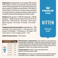 Гарантируемые показатели питательной ценности:Сырой протеин – 34%, сырой жир -18%, сырая клетчатка – 2,5%, сырая зола -7,5%, кальций- 1.4 %, фосфор – 1,1%, влажность - 9%, таурин - 0,2%. Сумма омега 6 и омега 3 жирных кислот – 3,5%.
