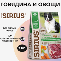 Сухой корм Sirius для любых собак всех возрастов, говядина и овощи 2 кг