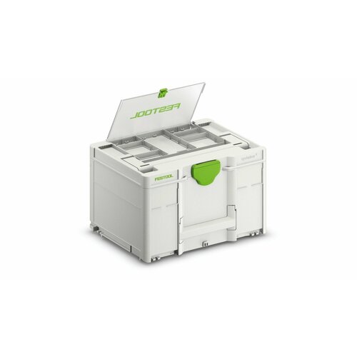 Мелкие детали аккуратно разложены в отсеке с прозрачной крышкой Максимальная гибкость: произвольное деление отсека на ячейки с помощью разделителей Отсек в крышке совместим с кассетами с битами и свёрлами BKS SYS3 Не подходит к кассетам с битами и свёрлами для систейнера T-LOC Кассеты с битами и свёрлами для отсека в крышке можно также использовать отдельно Совместима со всеми систейнерами Festool — легко стыкуется и транспортируется без вкладыша под машинки Преимущества систейнера с отсеком в крышке