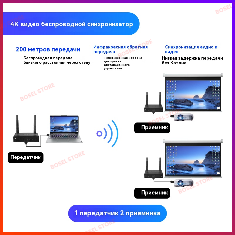 Купить Система беспроводной передачи HDMI сигнала | 4K видео, дистанционное управление, LAN-порт|До 200 м с доставкой по всей России.