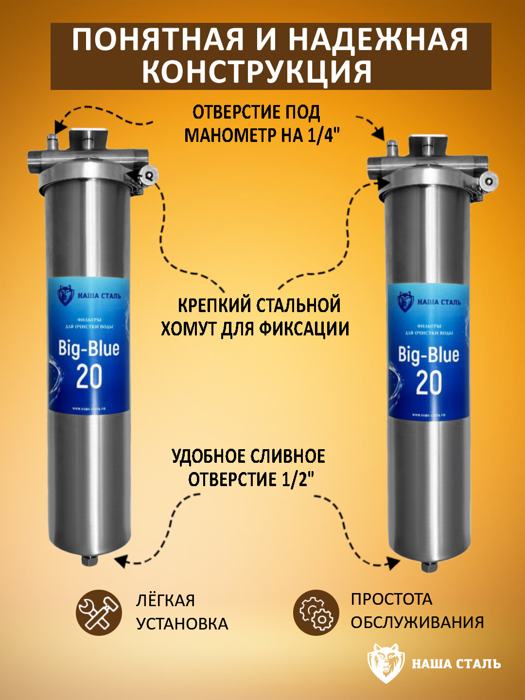 Купить Система фильтрации воды двойная Наша Сталь, умягчение и постфильтрация (угольная очистка) BIG BLUE 20 с доставкой по всей России. Система фильтрации воды двойная Наша Сталь, умягчение и постфильтрация (угольная очистка) BIG BLUE 20: сравнение цен, характеристики, фото, актуальное наличие и цены.