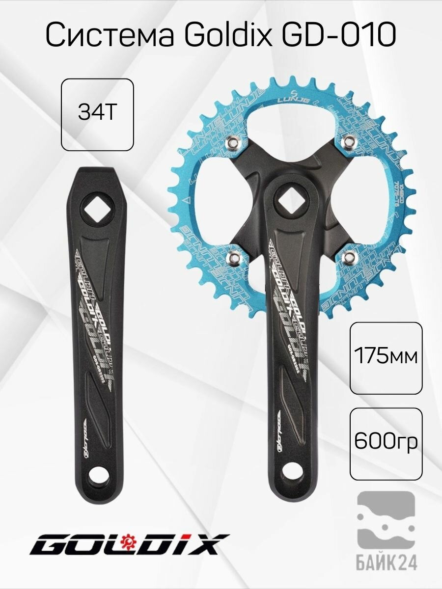 Система Goldix GD-010 — это надежный и универсальный компонент для горных и гибридных велосипедов, совместимый с трансмиссиями 10 и 11 скоростей. Выполненная из прочного и легкого алюминиевого сплава, система обеспечивает долговечность и стабильную работу. Стандарт крепления 104BCD/64BCD позволяет использовать как одинарные, так и двойные звезды, что делает эту систему подходящей для различных стилей катания. Длина шатуна 175 мм обеспечивает оптимальную передачу усилия, а крепление под квадратный вал делает установку простой и удобной.