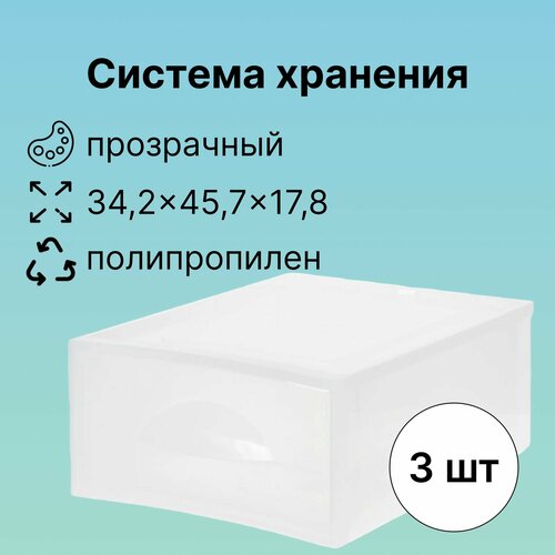 Система хранения, 34.2x45.7x17.8 см, 3 штуки: без крышки; сделаны из полипропилена прозрачного цвета; для хранения домашних мелочей