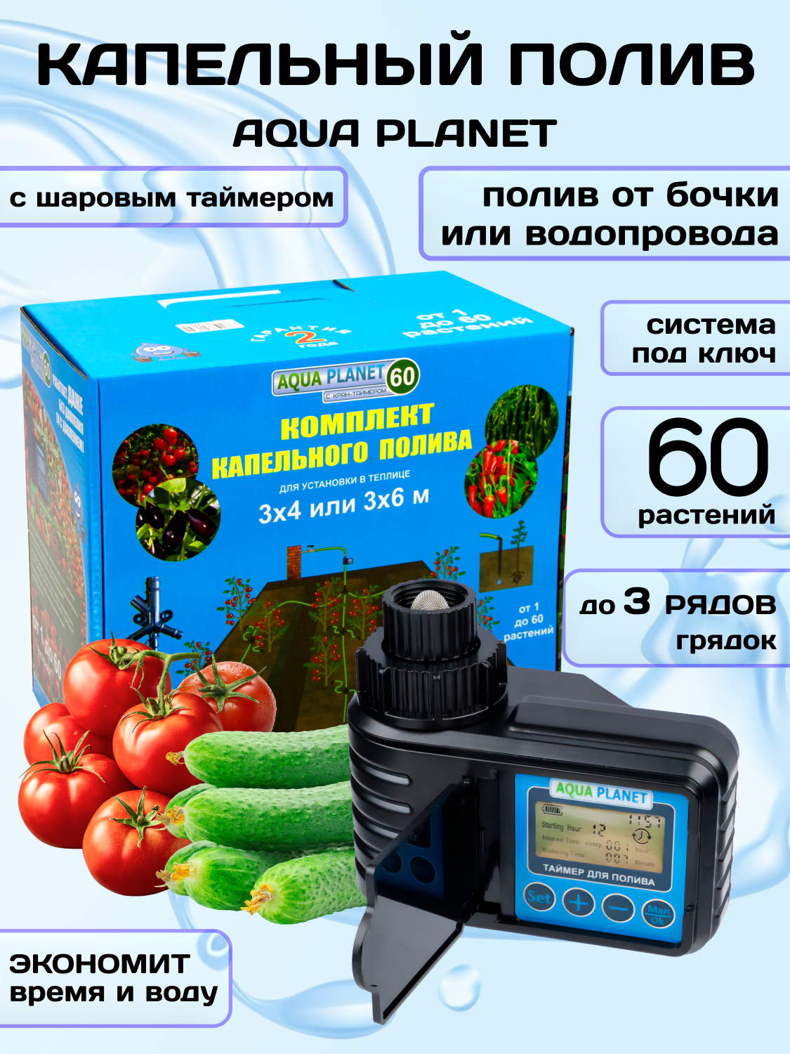 Капельный полив система для теплиц и огорода с таймером 60, Aqua Planet, 1 штука: сравнение цен, характеристики, фото, актуальное наличие и цены.