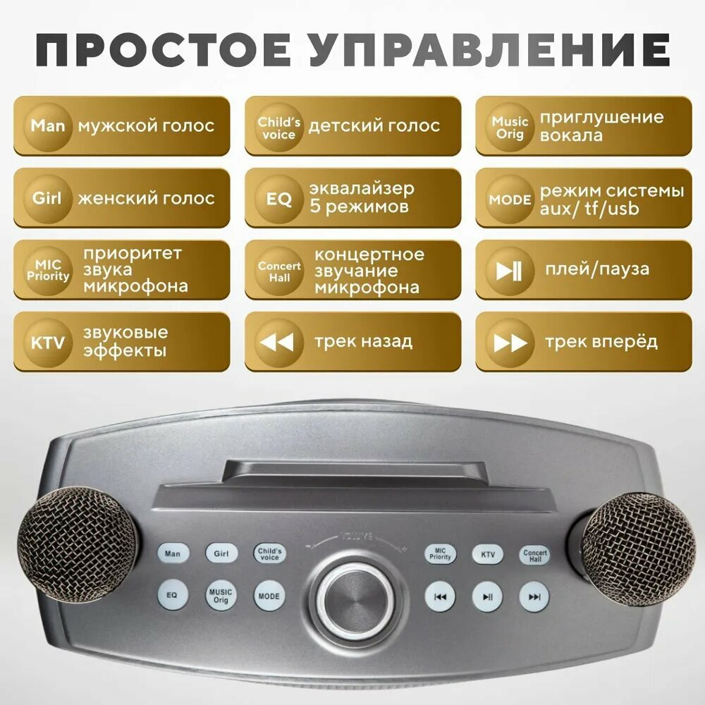 SDRD SD-306 Plus беспроводное караоке устройство — новинка 2021 года, стильная и качественная Bluetooth стерео-колонка с двумя Bluetoth микрофонами в комплекте. Функционально и технически усовершенствованная версия самого популярного устройства SD-306.