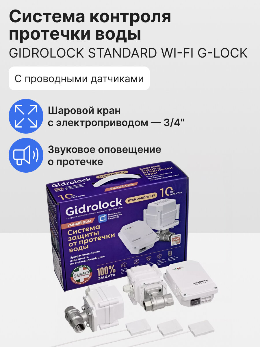 Комплект защиты от протечки Gidrolock Gidrоlock STANDARD Wi-Fi G-LOCK 3/4″: сравнение цен, характеристики, фото, актуальное наличие и цены.