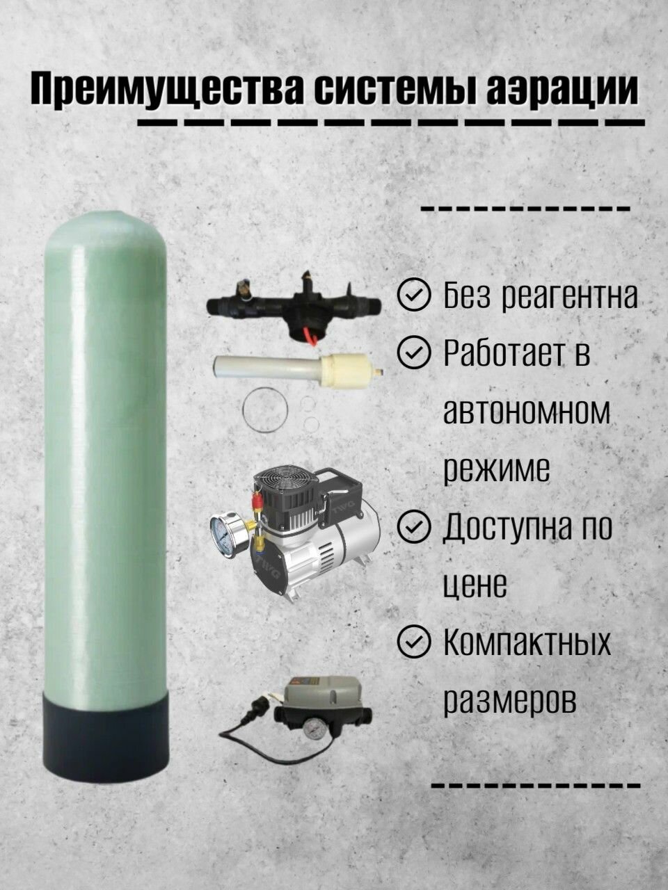Аэрация – это процесс очистки воды с использованием воздуха, который не только насыщает воду кислородом, но и помогает удалить металлические примеси и растворенные в воде газы (такие как сероводород, аммиак, метан и другие), устраняет неприятные запахи. В процессе окисления образуется нерастворенное железо (трехвалентное), представляющее собой видимые твердые частички, которые очень просто удалить из воды с помощью фильтров со специальным обезжелезивающим материалом. В отличие от аквариумных аэраторов, промышленные и бытовые установки аэрации чаще используют давление для увеличения окисления растворенных металлов, что делает их экономически более целесообразными по сравнению с фильтрами для удаления железа.