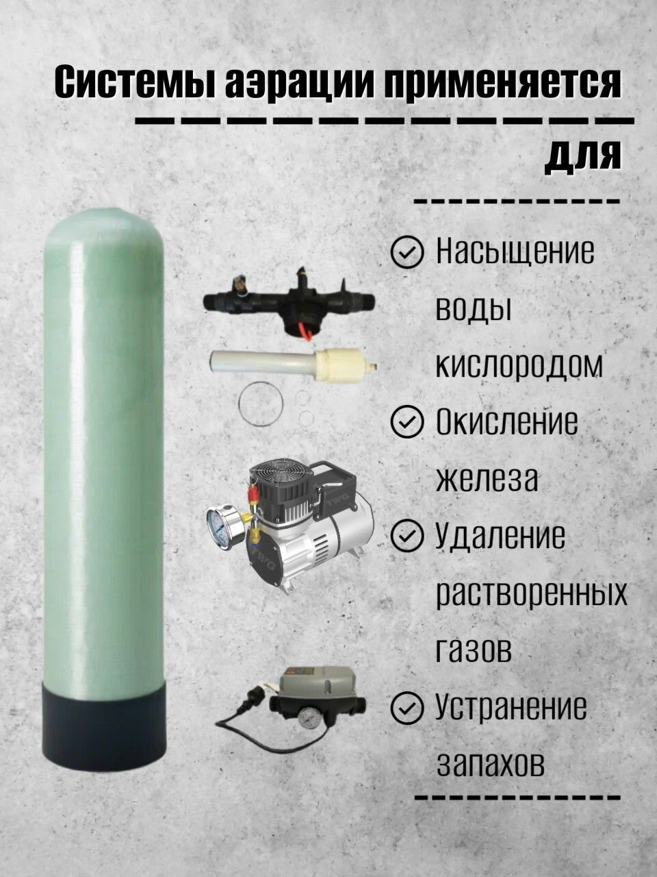 Система аэрации воды из скважины 1252/AERO-4-6 предназначена для насыщения воды кислородом, удаления сероводорода, устранения запахов, окисления железа и частичного удаления растворенных в воде газов, таких как аммиак, углекислый газ, метан и другие загрязняющие вещества.