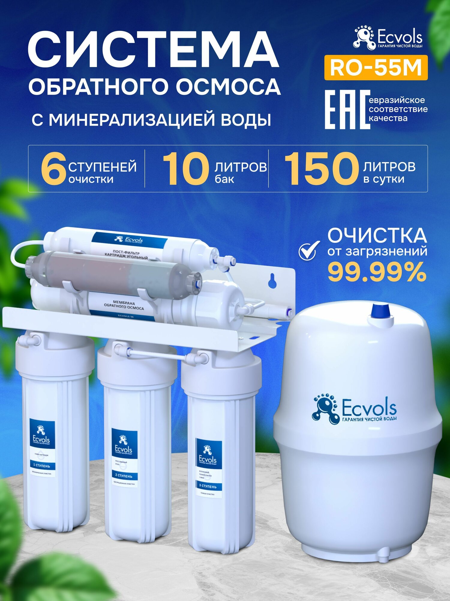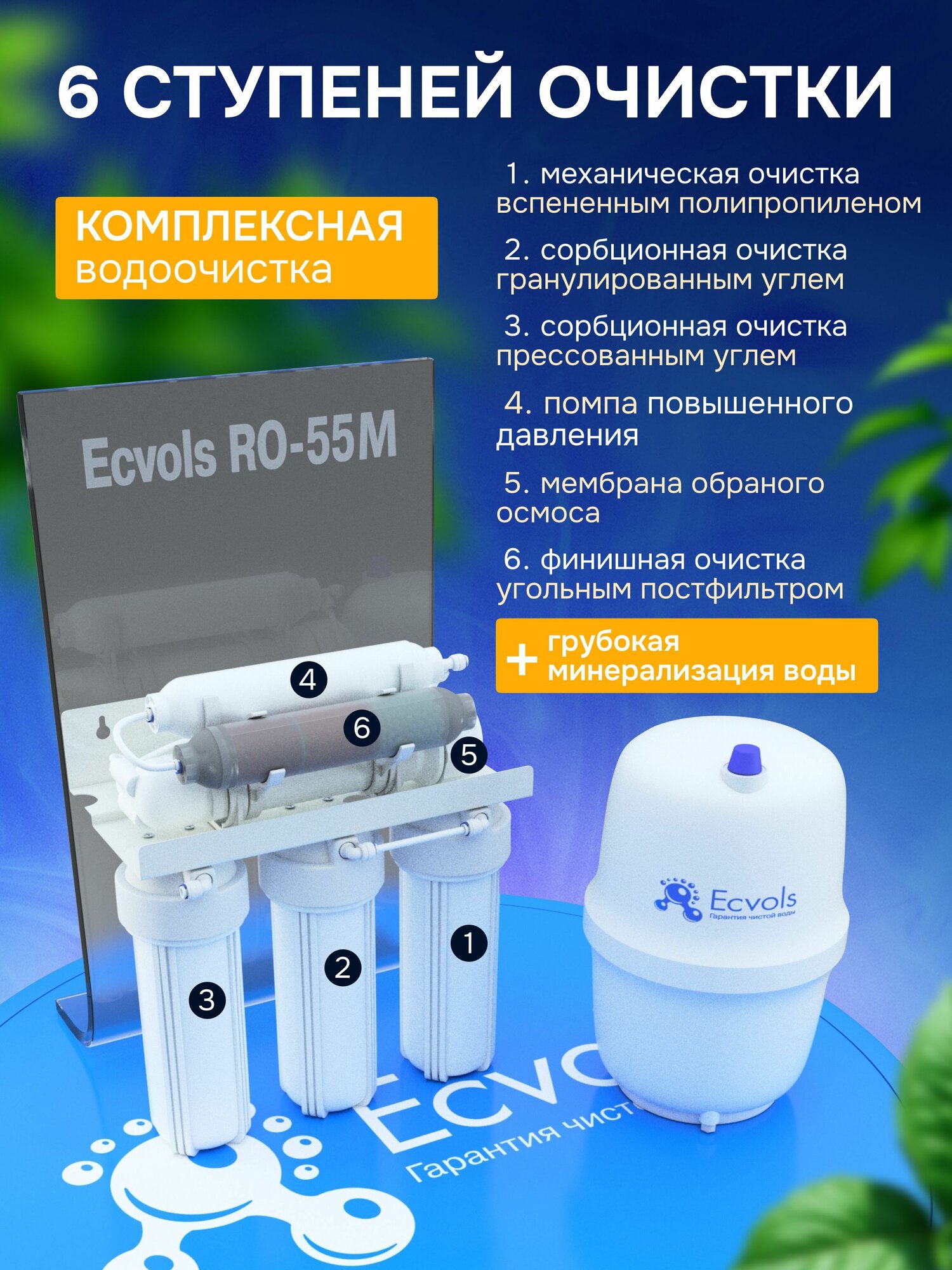 Система обратного осмоса Ecvols RO-55M, 6 ступеней, бак 6 л, очистка 99.9%: сравнение цен, характеристики, фото, актуальное наличие и цены.