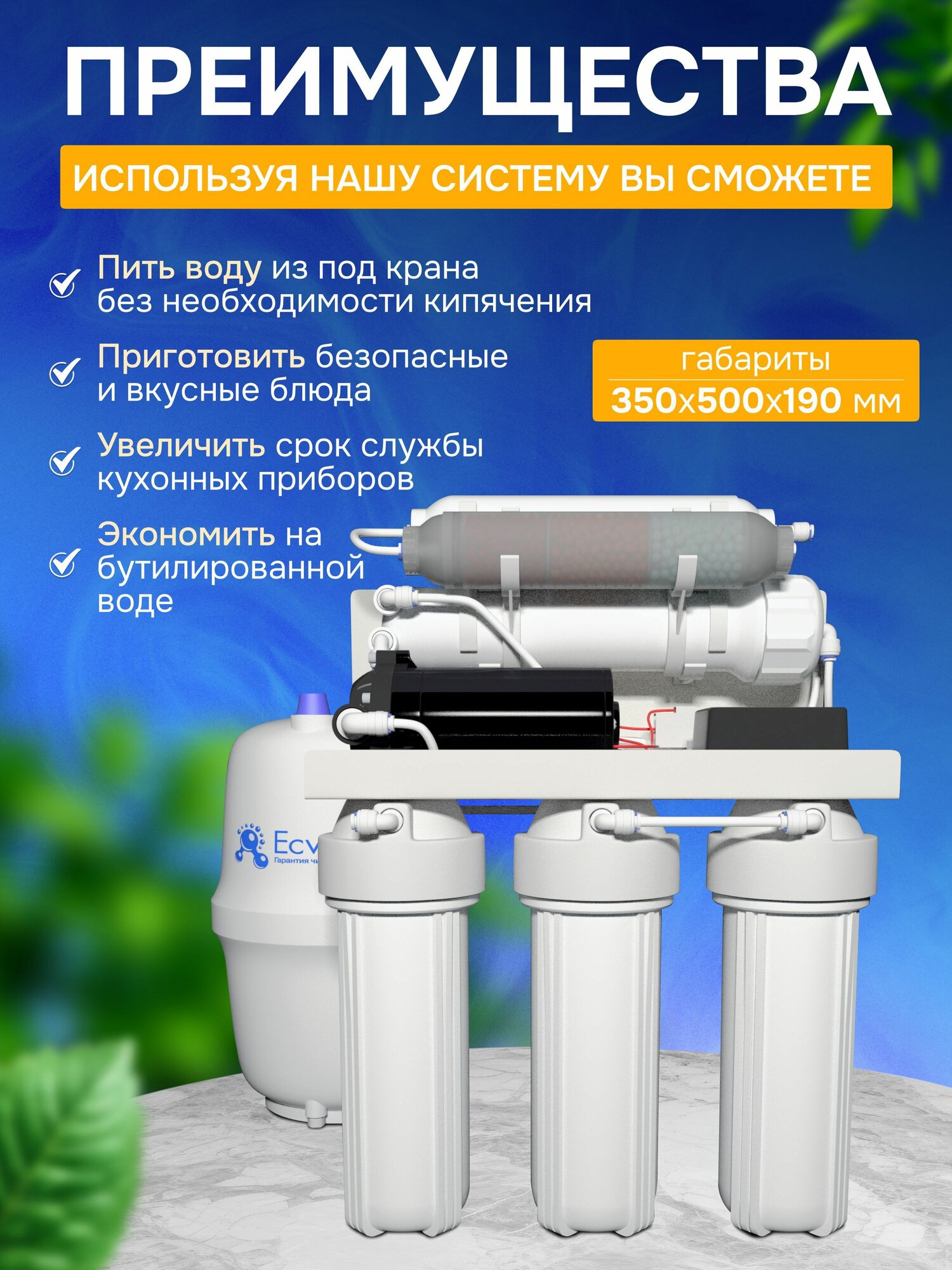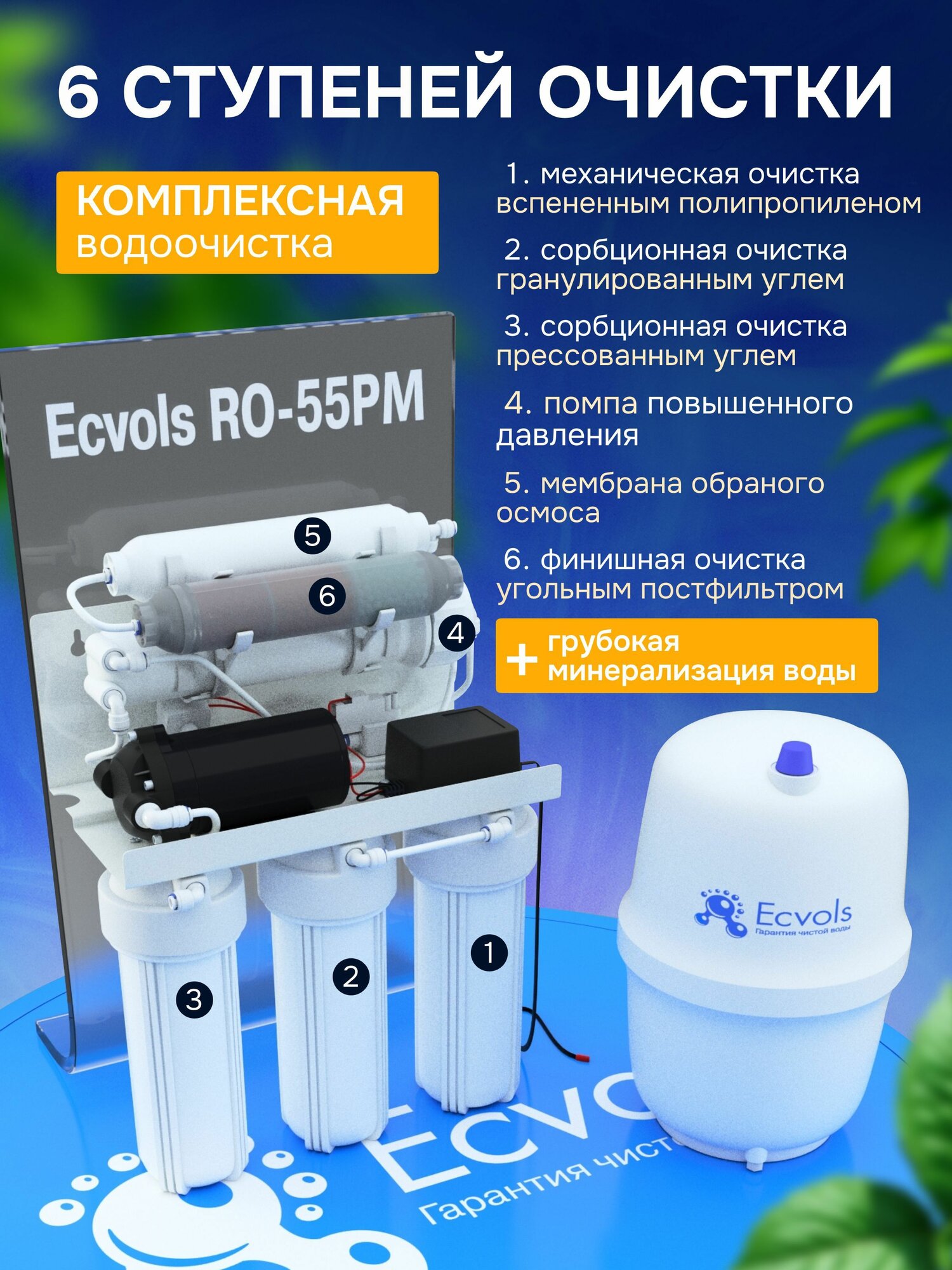 Система обратного осмоса Ecvols RO-55PM, фильтр обратного осмоса 6 ступеней очистки, бак 6 л, очистка 99,9%: сравнение цен, характеристики, фото, актуальное наличие и цены.