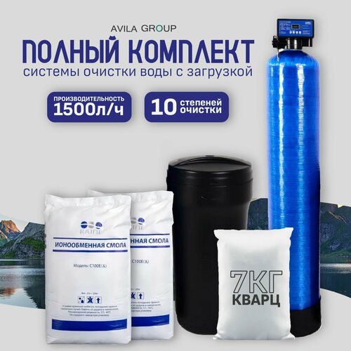В данной системе водоочистки для дома - уже входит в комплект вся необходимая фильтрующая засыпка для комплексной очистки воды сразу по пяти показателям, такие как; жесткость (причина накипи), железо, марганец и природная органика.